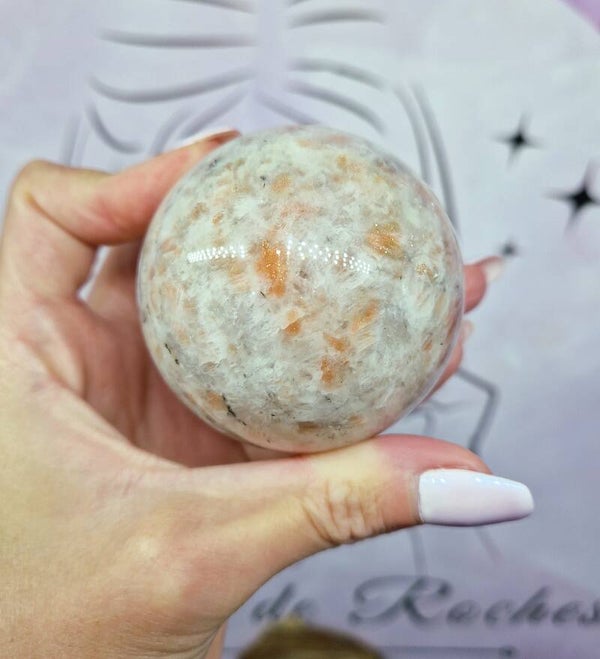 Sphère de Pierre de Soleil avec quartz et tourmaline noire
