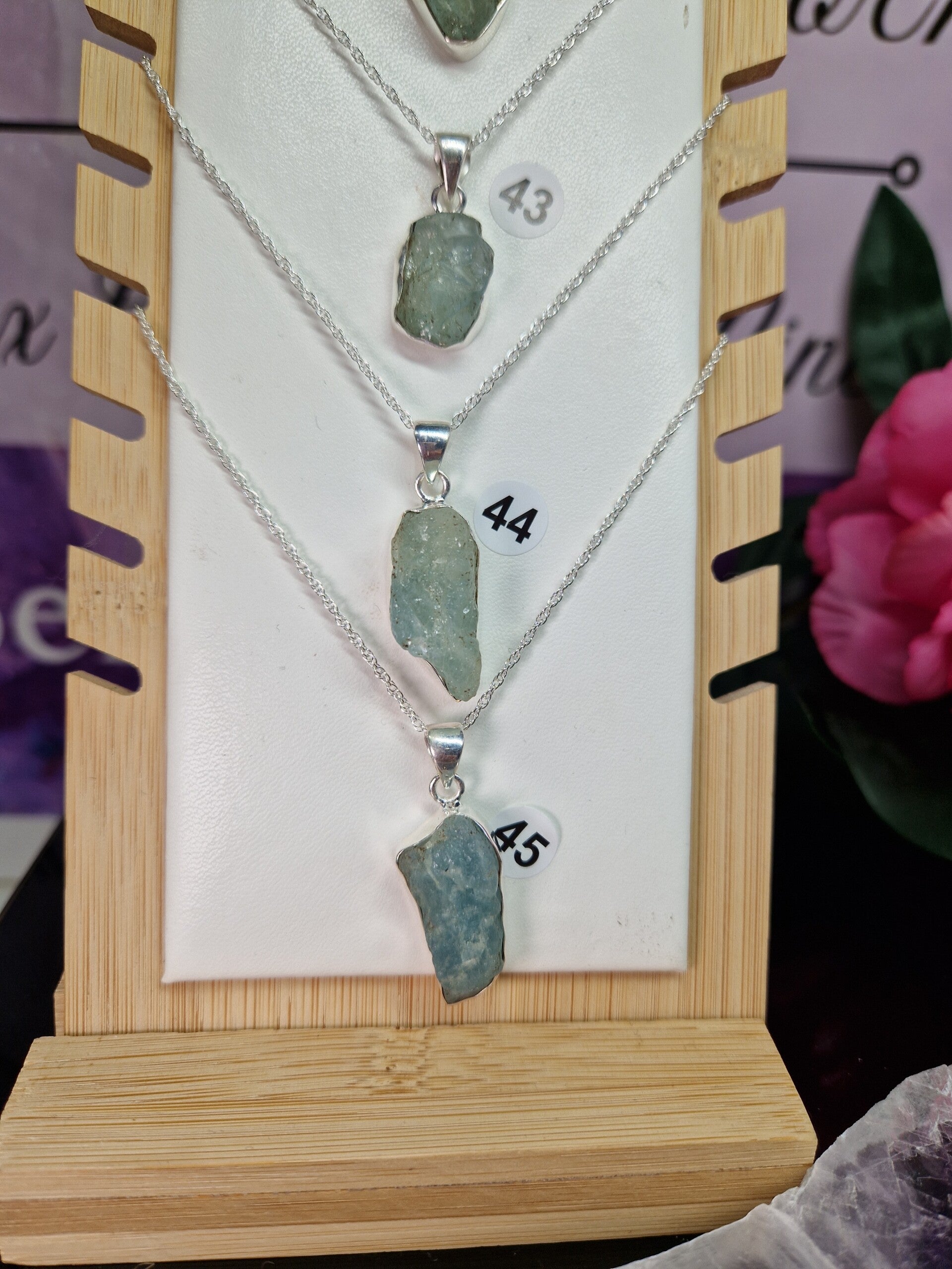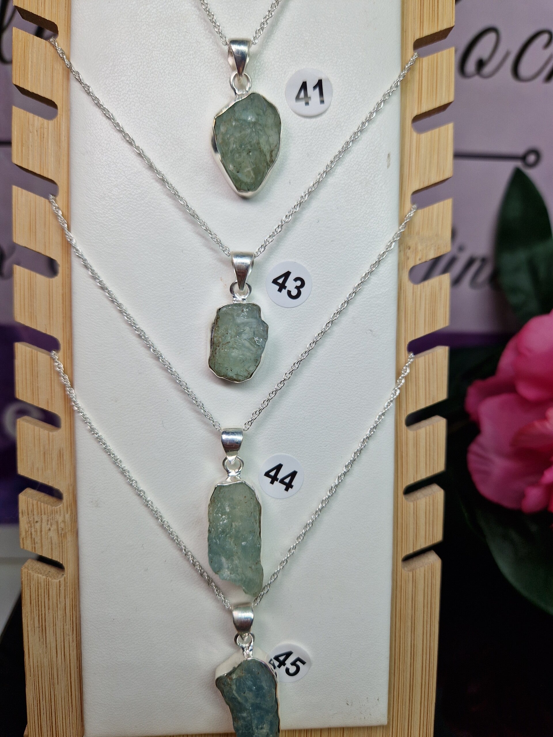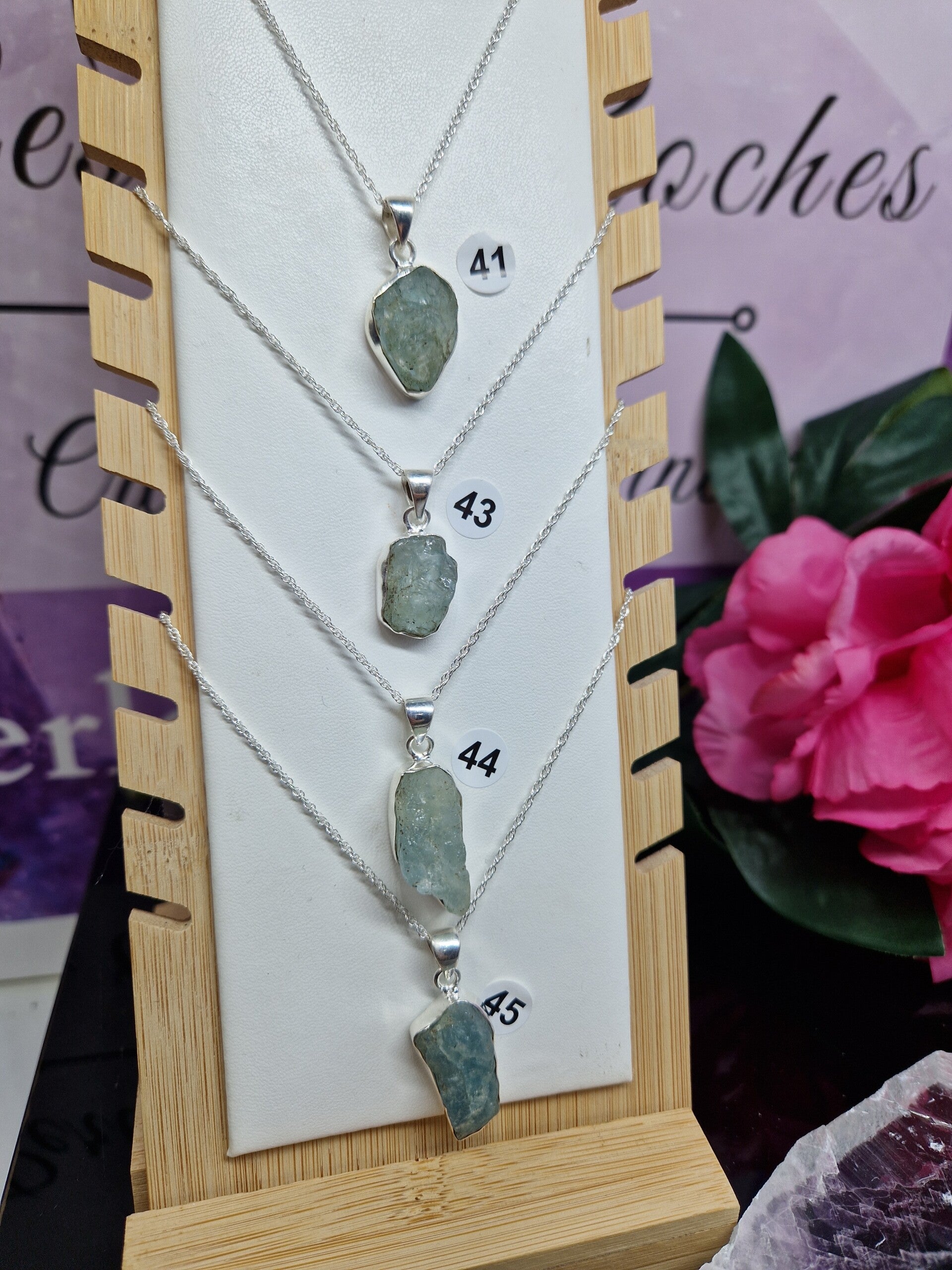 Collier en Argent S925 avec un morceau de aigue-marine brute sur chaine en argent S925 de 45cm.