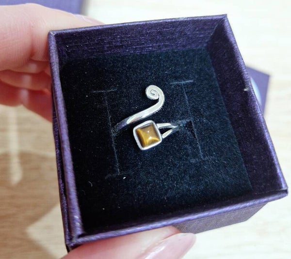 Petite bague reglable en argent S925 avec une pierre naturelle et un petit tourbillon en argent.