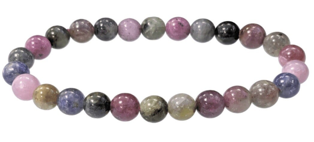 Bracelet en Saphir Multicolore – Perles de 6 mm – Taille Standard 16 à 18 cm – Qualité A