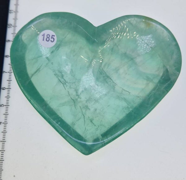 Sublimez votre espace avec ces coupelles en forme de cœur, taillées dans une fluorite naturelle aux reflets verts, violets ou multicolores.