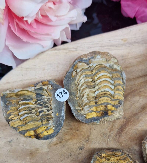 Ces petites géodes naturelles renferment chacune un trilobite fossilisé, parfaitement emprisonné dans la roche pendant des centaines de millions d’années. Une fois ouvertes, elles révèlent les deux moitiés du fossile, offrant une vue saisissante du trilobite partagé entre les deux faces, comme figé dans le temps.