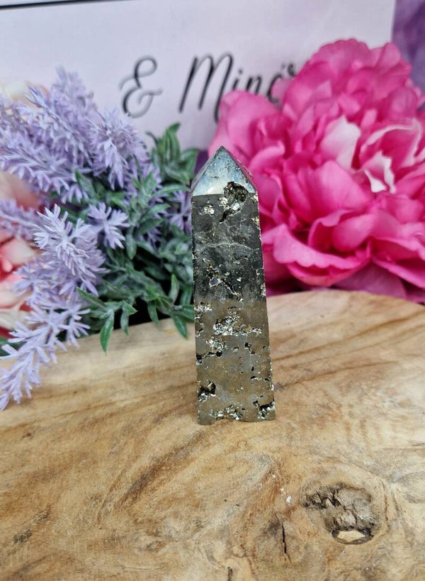 Cette pointe de pyrite du Pérou allie la brillance métallique naturelle de la pierre à une forme élancée et travaillée. Avec ses 9 cm de haut pour 2,5 cm de large, elle est idéale à poser sur un bureau, une étagère ou dans un espace de travail pour diffuser son énergie dynamique.