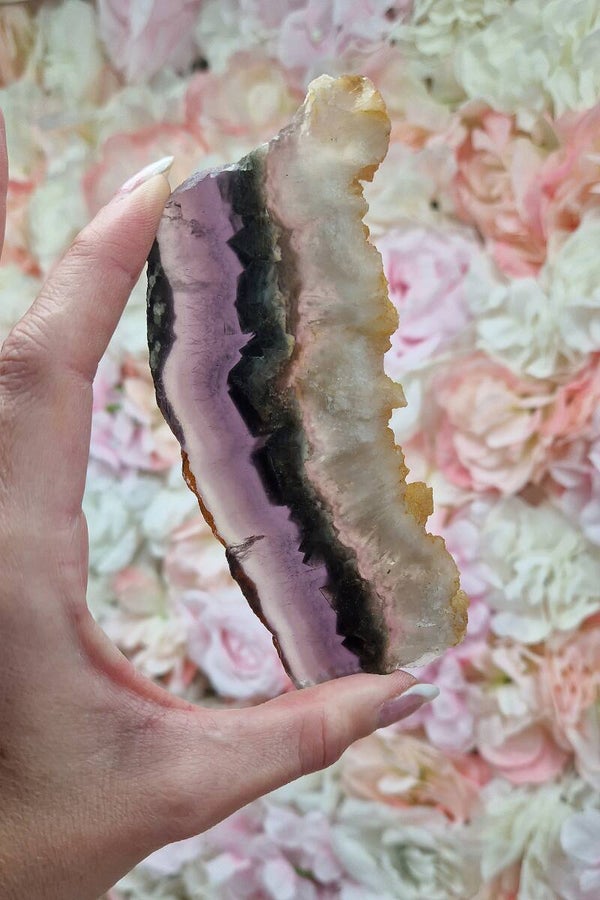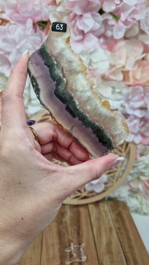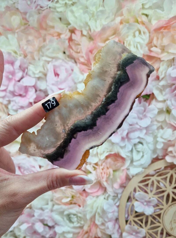 Note : Ces tranches sont uniques grâce à la fusion des deux pierres, offrant un effet visuel spectaculaire et un puissant mélange de vertus énergétiques.