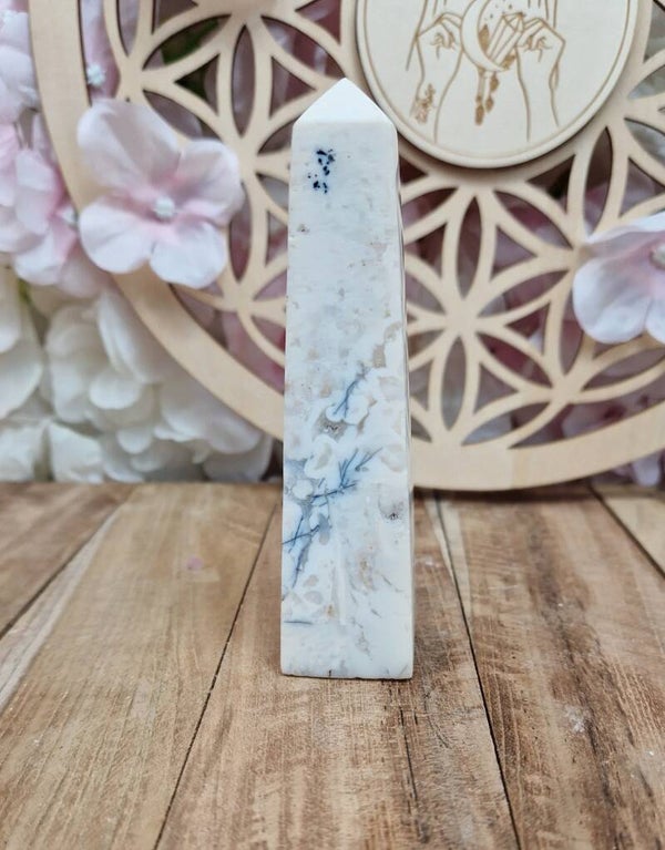 Pierre naturelle d’un blanc doux orné de motifs dendritiques uniques, l’agate neige est réputée pour apporter calme, équilibre et ancrage.