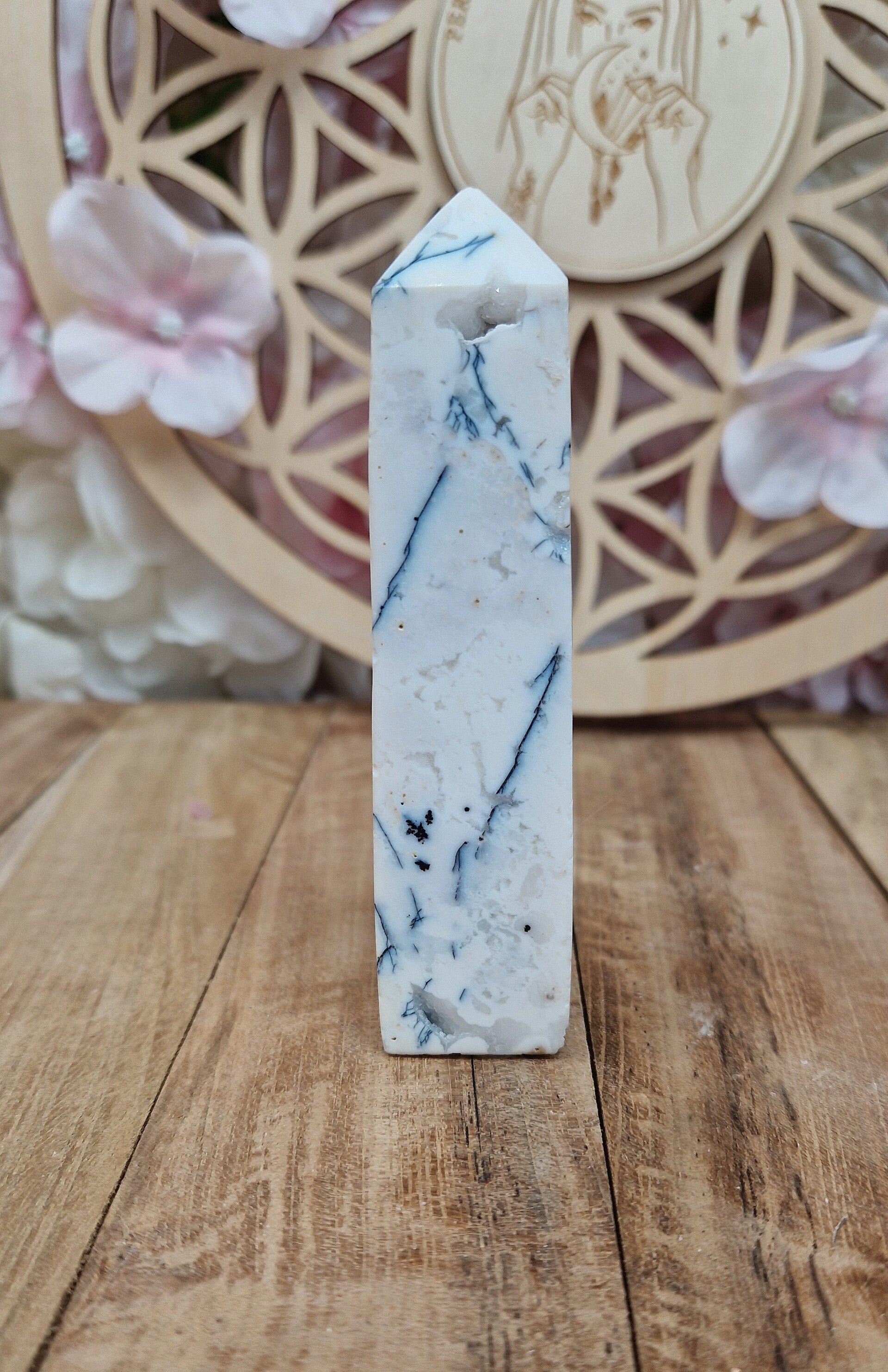 Pierre naturelle d’un blanc doux orné de motifs dendritiques uniques, l’agate neige est réputée pour apporter calme, équilibre et ancrage.