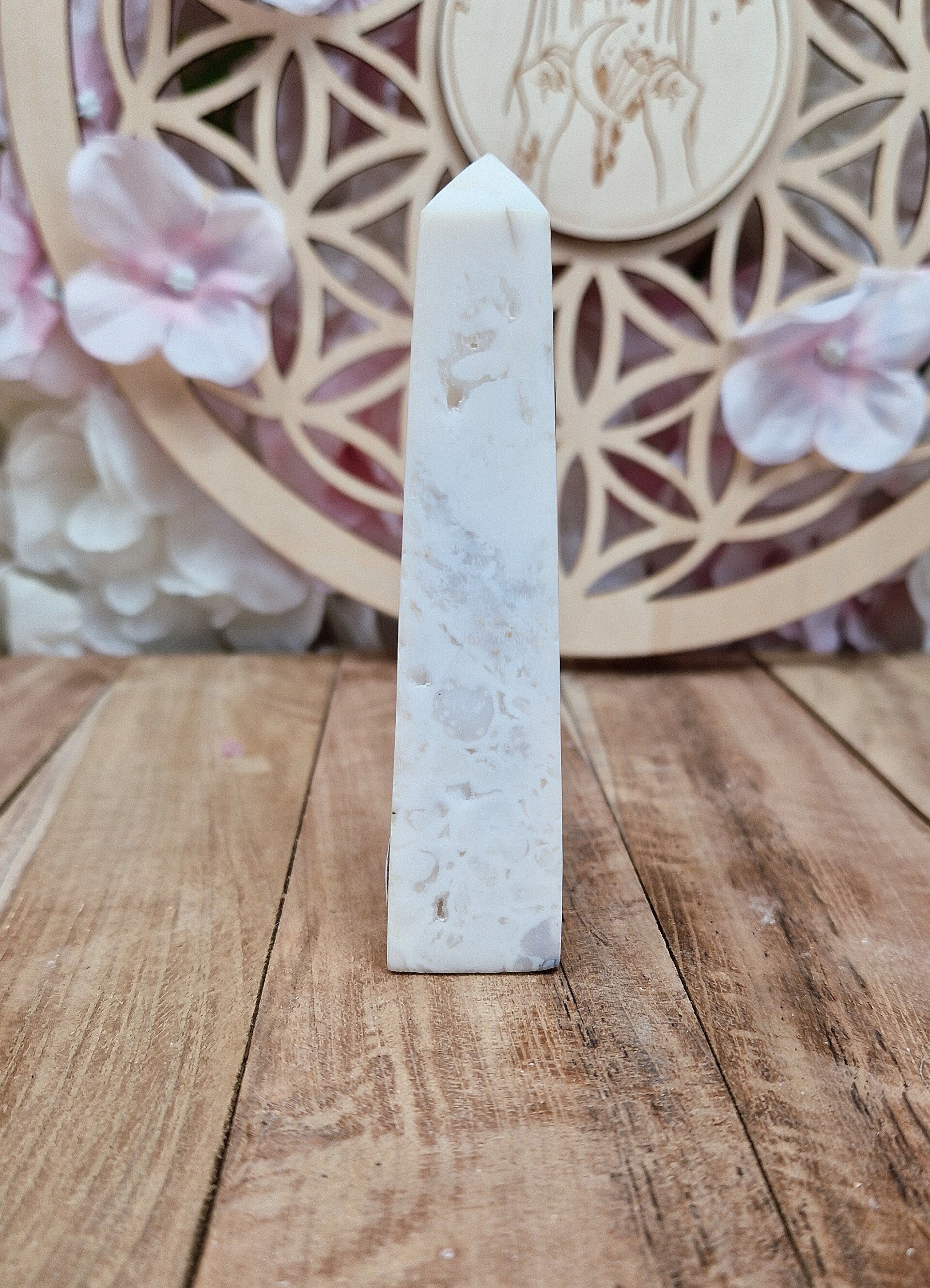 Pierre naturelle d’un blanc doux orné de motifs dendritiques uniques, l’agate neige est réputée pour apporter calme, équilibre et ancrage.